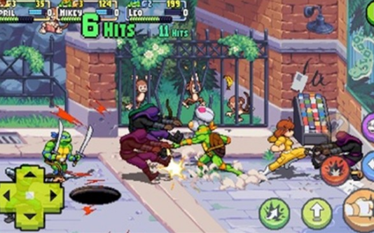 在游戏中,大家可以自由选择心仪的忍者神龟角色,我们将置身于经典的格斗场景中,这些场景完美还原了忍者神龟的经典战斗瞬间。每个角色都拥有特别的技能和特点,大家可以按照自己的喜欢的风格选择最适合自己的角色进行战斗。此外,游戏还支持多人合作模式,大家可以邀请朋友们一起组队,共同面对强大的敌人,体验团队合作的乐趣。