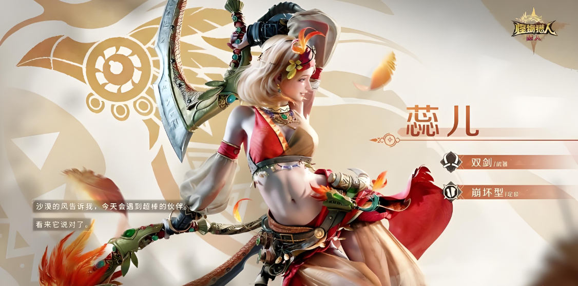 蕊儿是《怪物猎人:旅人》国服上线后备受关注的高机动性近战角色。其形象融合轻盈舞者气质与凌厉双刀风格,视觉辨识度突出。作为定位明确的物理输出型冒险家,她以高速连段、高频率压制见长,尤其适配需快速破防或应对大型迟缓目标的狩猎场景。