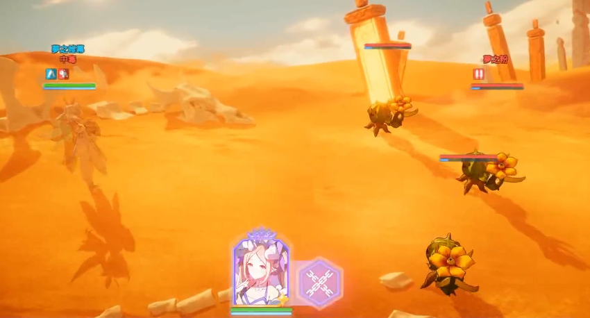 二技能【食梦精灵】具备智能索敌与状态联动双重特性:优先攻击敌方输出最高者,基础造成240%攻击力伤害;若目标此前已被【现在该睡了】或其它技能施加过睡眠状态,则伤害提升至280%,并同步清除目标身上300%数值的增益效果。此机制使其在对抗高爆发、强增益阵容时尤为关键。