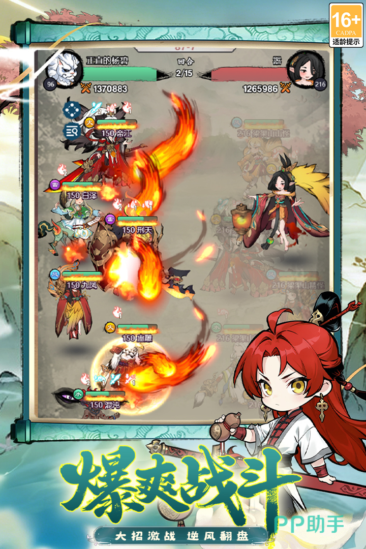 游戏构建以仙灵异兽为核心的养成体系,涵盖水、火、风、雷四大属性阵营,共设数十种可收集仙灵。阵营间存在明确克制关系,策略搭配空间广阔。例如火系祝融与毕方可叠加燃烧伤害,风系句芒具备偷取敌方攻击的机制,再辅以白泽、西王母等治疗型仙灵,即可构筑攻守兼备的实战阵容。所有仙灵支持升级、觉醒等多层成长路径,且每名角色均配备独立背景故事,随培养进度逐步解锁,显著增强收集与养成的情感价值与成就感。