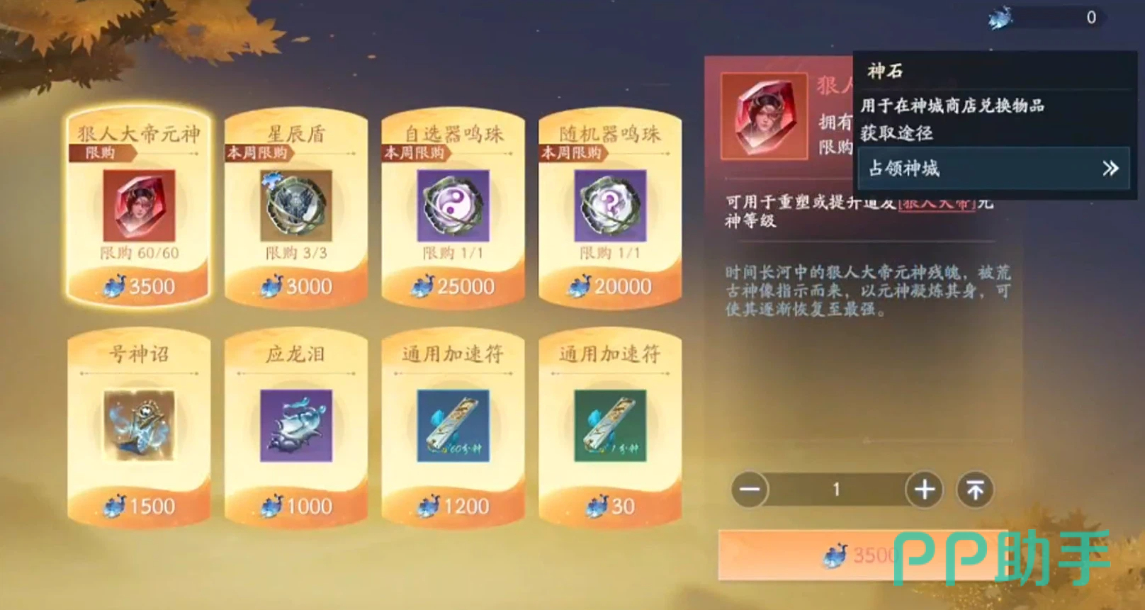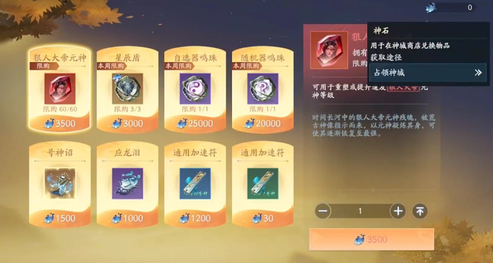 神石为战略级稀缺资源,仅能通过参与“神城争夺战”并成功占领神城后获得,不可通过其他任何方式产出。其唯一且不可替代的作用在于:兑换红色品质角色“狠人大帝”的元神碎片,以及高品质法宝核心材料——器明珠。后者是进阶顶级法宝的必备合成素材,因此神石的积累进度直接关联玩家后期战力上限。