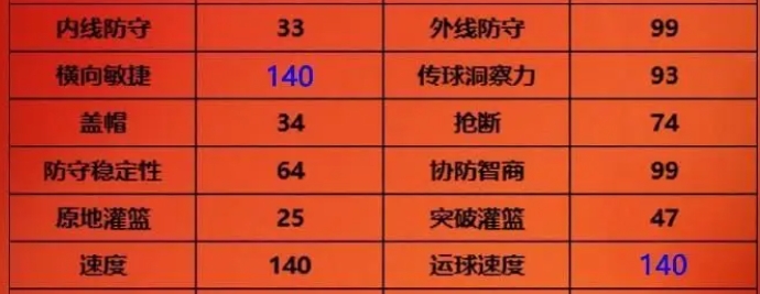在得分能力方面,达柳斯加兰同样表现出色,其中投属性为135,三分属性为126,尤其是外线左侧底角和45度左侧这两个三分区域,更是他的热区,凭借着自身携带的三分特工和中投王者这两个极具威慑力的徽章,当他游走在左侧翼时,便能对对手的防线造成巨大的杀伤力,不过需要注意的是,由于加兰的突破扣篮属性仅为47,而对方的 3 号位球员通常会常驻篮下,所以一般情况下并不建议他贸然切到内线强攻。