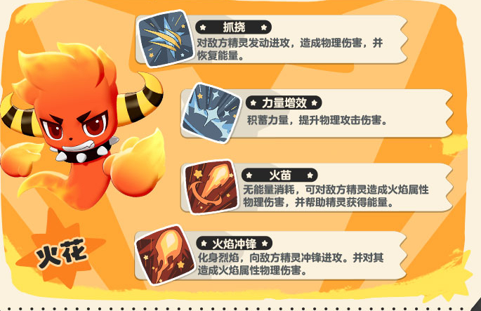 火花是火属性宠物,偏爱高输出、追求快速制敌的玩家可重点考虑,其特性“助燃”相当给力,施展火系技能后,伤害显著提高,战斗中能迅速打出高额爆发,瓦解敌方防线,比如在前期刷怪时,别的宠物可能要打好几下,火花凭借高爆发的火系技能,两三下就能解决,效率极高。