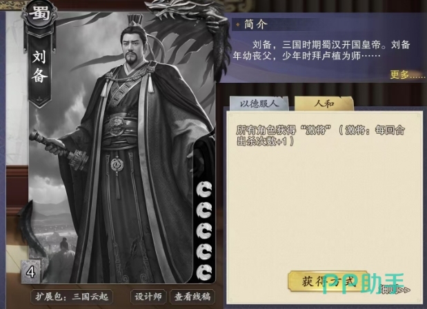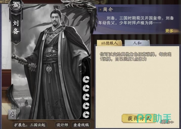 倘若场上队友中有具备补牌技能的角色,那么刘备会成为首选的补给目标,通过巧妙地运用以德服人技能,刘备可以在一回合内将手牌全部给出去,然后在队友补牌技能的助力下,下一回合又能手握充足手牌继续发动技能,如此循环往复,堪称游戏中恐怖的续航机器,对于那些选择主公身份的玩家来说,刘备更是一个绝佳的选择,一旦担任主公凭借以德服人这一强大的回血技能,刘备在体力方面几乎无需担忧,能够更加稳健地领导忠臣阵营,抵御反贼的进攻。