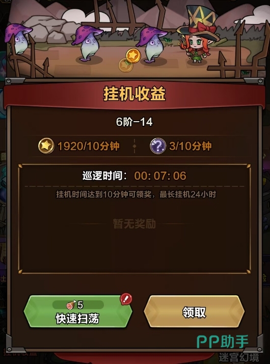 挂机系统依据玩家当前通关的最高普通关卡层数自动结算收益。层数越高,挂机产出越丰厚,涵盖宝石洗练道具、钻石及各类品质宝石。此外,已通关关卡支持体力扫荡功能,可快速补足资源缺口,大幅提升日常效率。