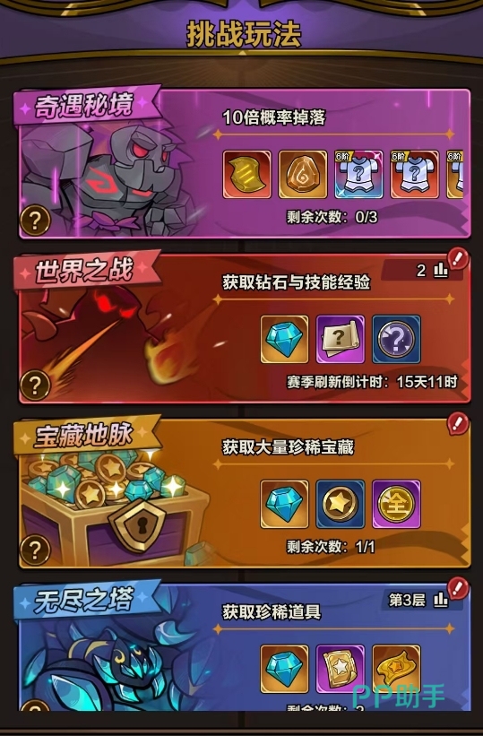 通关普通副本是获取基础养成资源最直接的方式。每次成功通关可获得装备、宝石、元素经验等关键道具,属于每日必做的核心循环。需注意:单次挑战固定消耗5点体力,体力不足时无法继续推进,建议合理安排挑战节奏,避免资源空转。