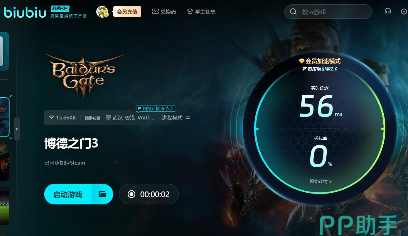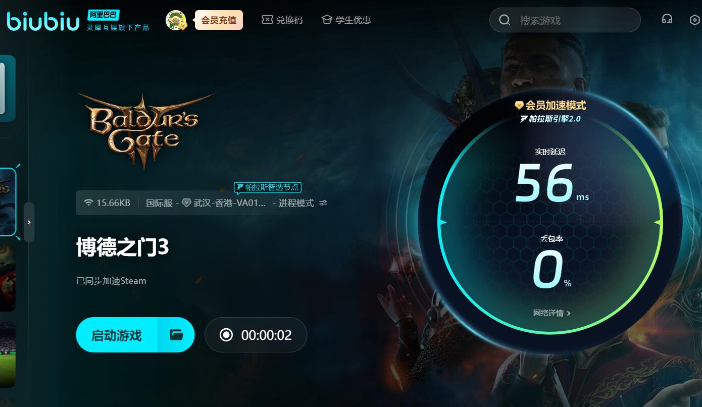 在biubiu这个软件里面,专门为博德之门3开设了一个加速入口,用户在应用中输入这个游戏的名称,就能找到这个入口,接着点击图标就能将其启动。在加速服务运行的过程中,不仅能让游戏流畅地运行下去,当你游玩在线模式,延迟和丢包率也会变低,这个时候你再去与队友组队打怪,就不会感到卡顿了。为了方便大家去试用,平台还为新用户专门安排了一项福利,新用户完成注册后,就能免费体验3小时,接着你就能使用软件内的各项服务了。此外,平台还下发了一批兑换码,无论新老用户都能使用,大家在软件内输入【biubiu不卡顿】这个码就能兑换三天的加速时长。