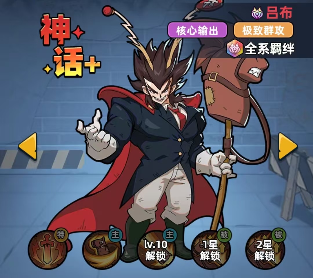 吕布则归属物理属性,以无双值积攒与撕裂状态叠加为核心输出路径,具备稳定群体伤害能力与长线作战韧性。该角色在副本清怪、爬塔攻坚及持久型PVP对局中优势明显,输出曲线平滑且容错率高,对平民及微氪玩家极为友好——低资源投入即可达成可观战力转化,养成路径清晰,泛用性强。