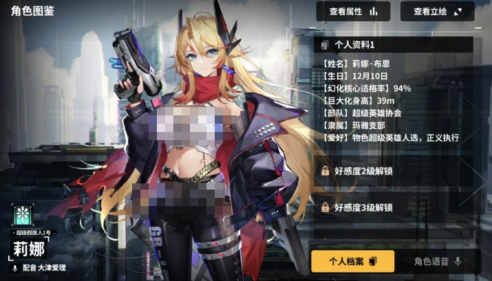 莉娜以其强大的支援能力脱颖而出,她的被动技能当目标队友生命值低于 50%时,会瞬间为其恢复100%的生命值,让濒死的队友重新投入战斗,并且增加其一定支援力的减伤系数,这一效果可持续 12 个回合,医疗援护技能则持续地对队友施加恢复效果,同时增加装甲值 12 回合,在回合结束后,还会进一步帮助队友回复一定生命值,攻击援护技能能够提升目标队友一定攻击力,浪漫守护技能不仅会增加队友的减伤系数,而且如果该队友身上有恢复类型的效果,还会额外增加一定的减伤,进一步增强队友的防御能力,而正义执行技能则是在自身行动前,若任意队友身上有恢复效果,就会为全体队友施加永久持续回复buff,并增加攻击力,每回合结束时还会再回复目标队友一定最大生命值。
