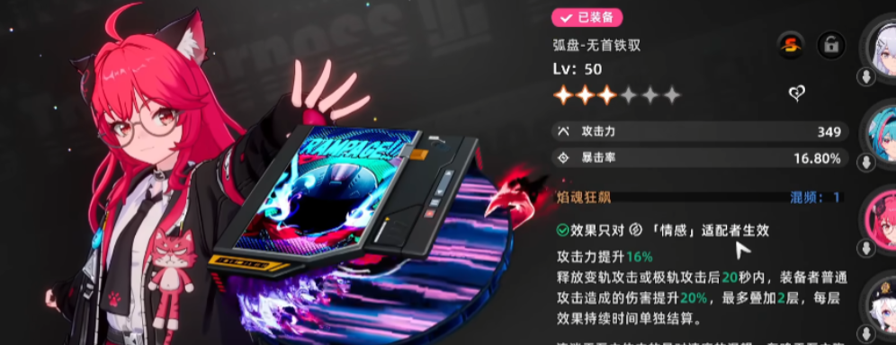 角色战力构筑是贯穿全程的基础逻辑。战斗表现高度依赖角色个体强度,而成长路径主要依托三类手段:等级提升、弧盘装配与角色突破。其中,弧盘为专属武器系统,直接决定角色属性加成方向与技能释放效能;不同角色对弧盘类型存在严格适配要求,并非通用装备。升级与突破所需材料需通过体力消耗副本获取,资源规划需兼顾短期作战需求与长期养成节奏。