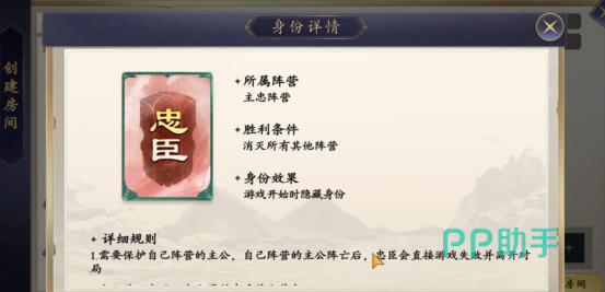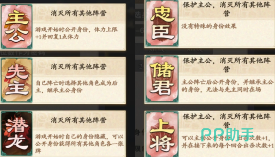参与身份模式需满足两项硬性条件:一是玩家所拥有的武将数量不少于12名;二是局内人数须为2至8人。该模式共设16种身份,划分为三大阵营——主忠阵营(含8种)、反贼阵营(含4种)、其他阵营(含4种)。各身份不仅拥有独立的胜利目标,还配备专属技能与行为规则,彼此间形成严密的制衡关系。