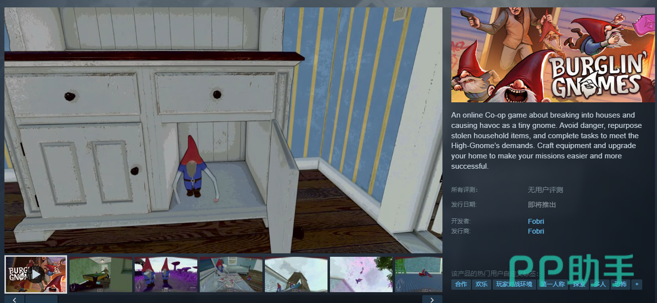 BurglinGnomes具体上线日期尚未公布,目前Steam页面仅标注为“即将推出”。根据官方释放的节奏与行业惯例推测,游戏有望于2024年第二季度正式发售,整体等待周期较短,玩家可持续关注后续动态。本作是一款主打多人协作的第一人称动作冒险游戏,融合轻度恐怖氛围与幽默解构风格,美术采用暖色调手绘质感,视觉呈现温馨治愈,沉浸感强,合作趣味性突出。