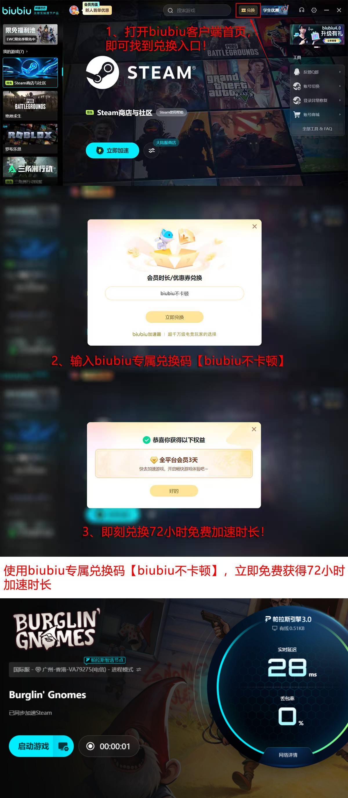 职业电竞选手Aixleft已确认担任该游戏联机体验官,全程参与多轮压力测试,并在日常训练环境中持续使用biubiu加速器进行网络环境验证。新用户注册后可立即获得24小时会员加速权限;输入激活码“biubiu不卡顿”,即可额外领取72小时会员时长,累计享4天免费加速服务。