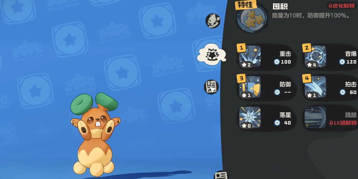 绿耳松鼠的核心机制在于“囤积”特性——当能量值达到10点时,自身防御力将提升100%,使其在面对非克制属性对手时具备极强的抗打击能力。为了快速叠加能量,推荐携带可附加能量增益的“抓挠”技能,配合无消耗且提供减伤效果的“防御”技能,显著增强其站场续航。输出方面,“神级冲撞”具备每回合自动降低耗能直至归零的优势,而“沿途暴击”则能在受到攻击后减少1点技能消耗,两者协同使用可在高能状态下实现全技能零耗能循环,大幅提升攻防效率。合理配置下,绿耳松鼠不仅能扛能打,还能持续压制对手节奏。