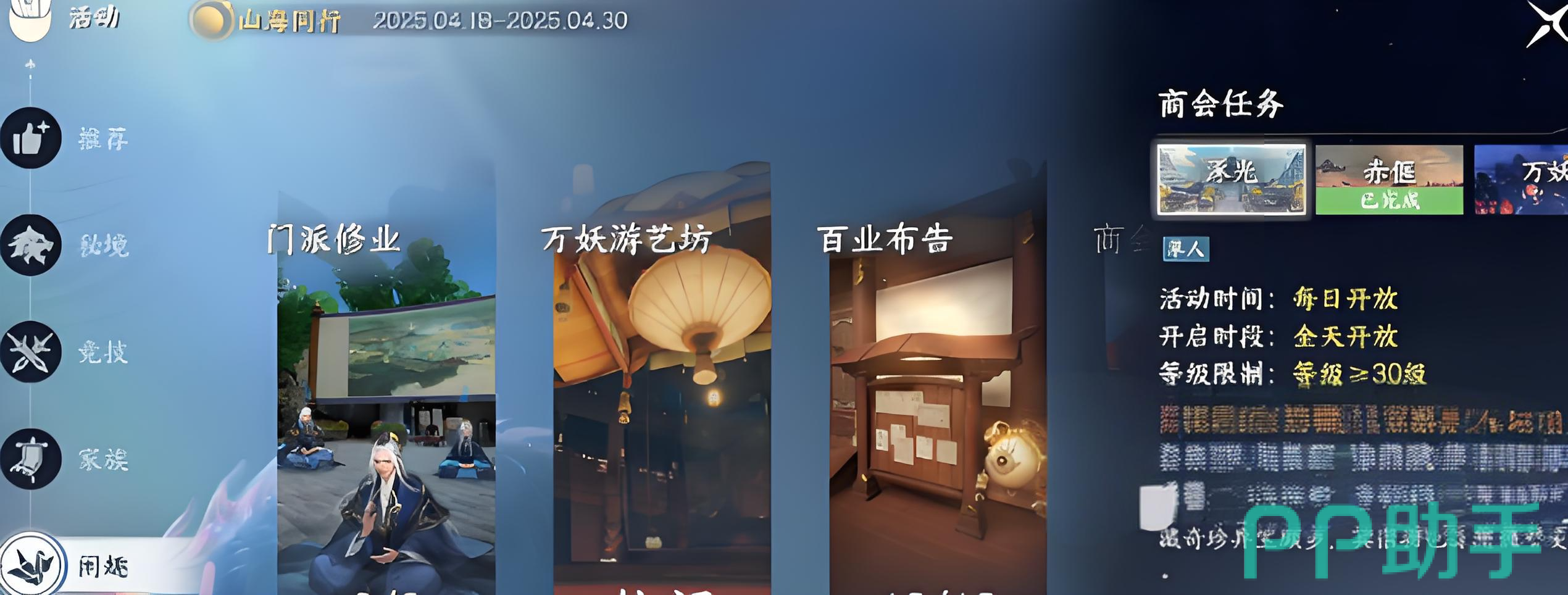 在闲趣里面一共有门派修业、百妖游艺坊、布业百告、商会任务等多种玩法。