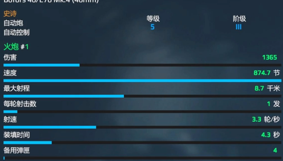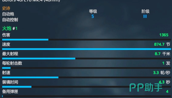 在游戏的世界中,现代战舰博福斯主炮射击的速度还是比较可观的,可以达到一分钟220发。在游戏中还可以迅速的完成目标的突袭,然后去完成火力压制,有更多优势。