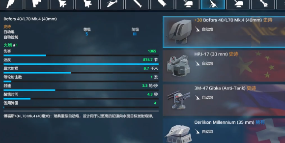 无论是敌方战机准备靠近骚扰,还是小型舰艇准备突袭。博福斯自卫炮都可以迅速的展开攻击,然后形成一个密集的弹幕,能有效去阻挡敌人的进攻。射程也是不容小看的,有效的射程可以达到8500米。在游戏中,如果是在很远的距离内,照样还是可以完成发射。