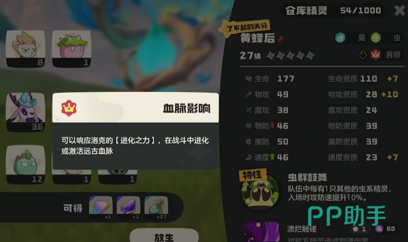 当成功放生首位首领精灵后,前往炼金台界面,在精灵球图标的最后一个格子中,会自动解锁首领血脉秘药的合成配方。每一瓶秘药需消耗10个“首领血脉灵碎”,这意味着除首次获取外,还需额外放生9只首领级精灵以集齐全部材料。建议选择当前队伍中不再使用的个体进行放生,避免影响主力阵容。