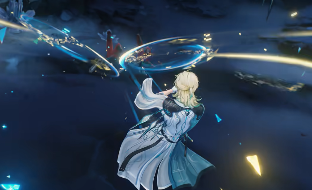 共鸣解放“于永冻中释义”为衍射属性范围伤害,计入普攻伤害计算,支持空中释放。变奏技能“注入黎明以前”附带日髓碎刃投射效果。延奏技能“致濒死以答”造成500%攻击力的衍射伤害。