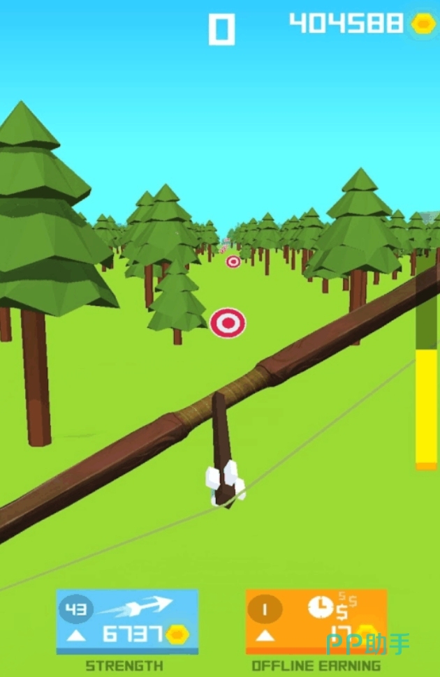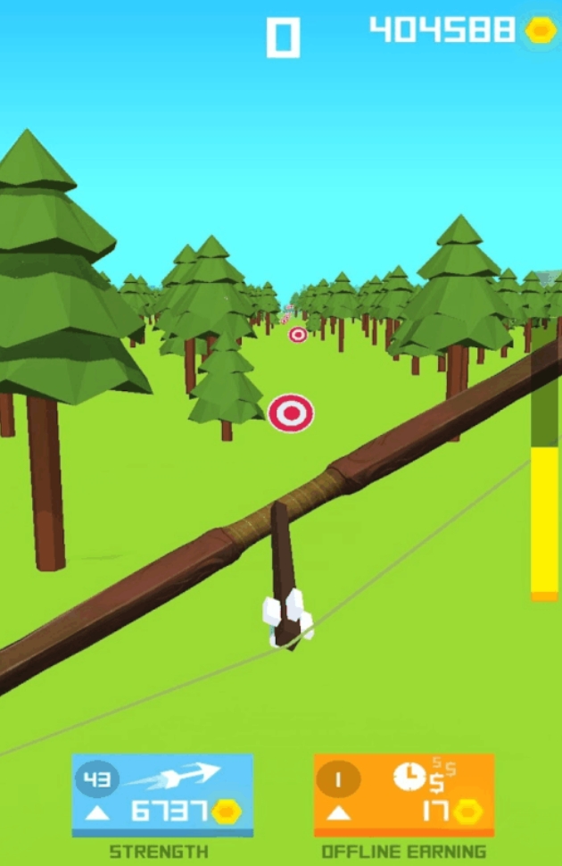 《神箭手》是很休闲的射箭游戏,在拉动弓弦后,箭矢就能立刻飞射出去,并在行进时间结束后落到最远的靶子上,游戏也将以箭矢飞行的距离作为玩家本次挑战的成绩。若各位想让箭矢射出更远的距离,还可在获取数额足够的金币后,来增加弓弦的张力和提升弓弦在空中飞行的时间,让自己能不断地更新最佳成绩,成为真正的神箭手。