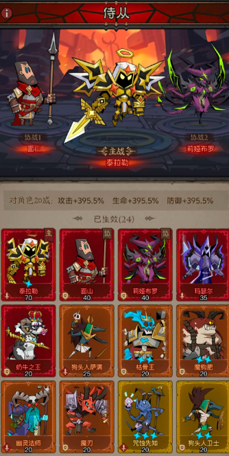 核心战斗力角色在游戏挂机之前的装配,是最为重要的,在主要的角色选择方面,玩家可以选用泰勒拉,泰勒拉作为主角色时,不仅能够给队友增加全能的免伤护盾,还能够附带有免伤光环,为队友增加50%的免伤概率,同时,泰勒拉还是个攻防兼备的角色,他可以通过吞噬敌人的攻击数值,来转化成为自己的反击数值。