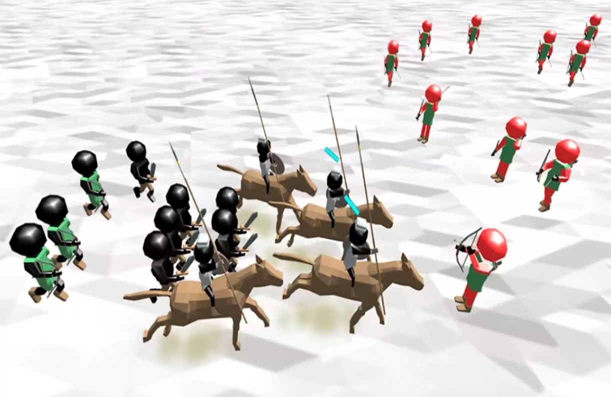 《火柴人战场模拟器》角色被设计成了很多火柴人的外观,还可以看到很多搞笑的表情包,玩家需要去合理的搭配自己的兵种,为他们选择合适的位置。在作战的时候作为火柴人的指挥官,指挥好每一个火柴人在战场上作战。玩家需要利用闯关的方式,在每一个不同的关卡中,地图有很多的样式,可以利用墙壁进行遮挡,火柴人会拥有不同颜色的皮肤。