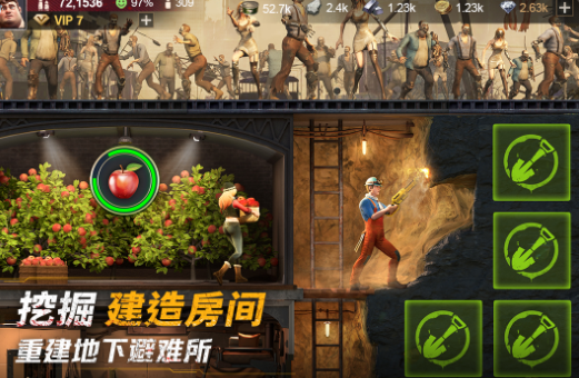 城市受到丧尸的攻击,人们已经进入到了一片黑暗的状态,如果想迎来黎明,那就需要作为指挥官,修建一个地下庇护所,并且带领其他的成员不断建造防御设施,探索荒野,除了寻找资源之外,还可以拯救其他的幸存者,这样就可以在游戏里一起联合,共同去迎接最终的黎明,除了单纯的武器收集和战斗,游戏里玩家还可以在地下修建庇护所,让更多的幸存者都有生存空间。