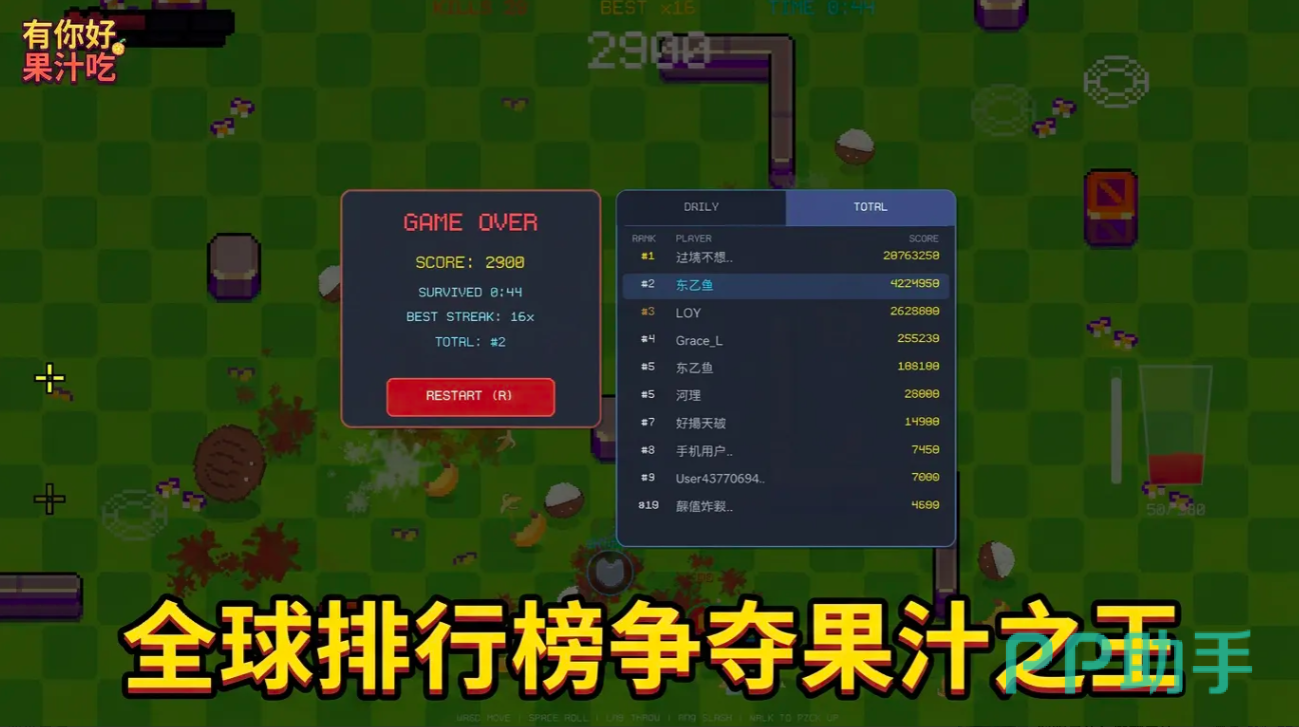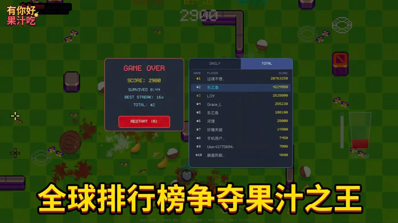 区别于传统硬核动作游戏,《有你好果汁吃》大幅降低入门门槛:开局即战,无冗长教学,新手可零基础快速投入砍杀循环。在前期测试反馈中,多数玩家表示“单局时长适中、节奏紧凑”,具备强成瘾性——常因“再打一局”而延迟休息,形成典型的时间沉浸式体验。