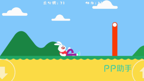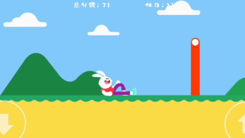 由于兔子本身就是会蹦蹦跳跳的小动物,所以这款跳跃游戏,就以非常可爱的小兔子进行设计,利用简单的方法,在跑酷类型的各种地图当中,展现出各种跳跃动作。里面所涵盖的难度就是,在进入不同的障碍关卡中,由于所距离的长度不一样,所以你在跳跃时,跳跃的高度也会有一些区别。想要获得更高分数的情况下,也要不断的吃食物来保持体力。
