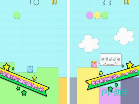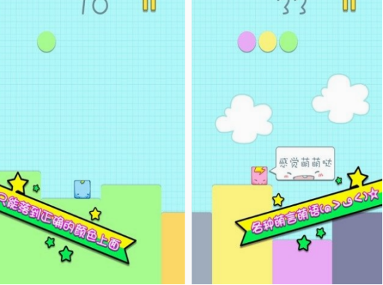 这款画面清晰又可爱,玩法又很简单的方块跳跃游戏,需要玩家利用点击屏幕的方式,控制方块完成跳跃。主要的难点就是,你需要观察柱子的颜色,只有符合条件的情况下,方块才能成功的落下来。但如果是不符合颜色的柱子,一旦踩上去的话就会让方块掉落深渊,所以你必须要做好这方面的准备,更不能让方块堵住颜色相符的柱子。