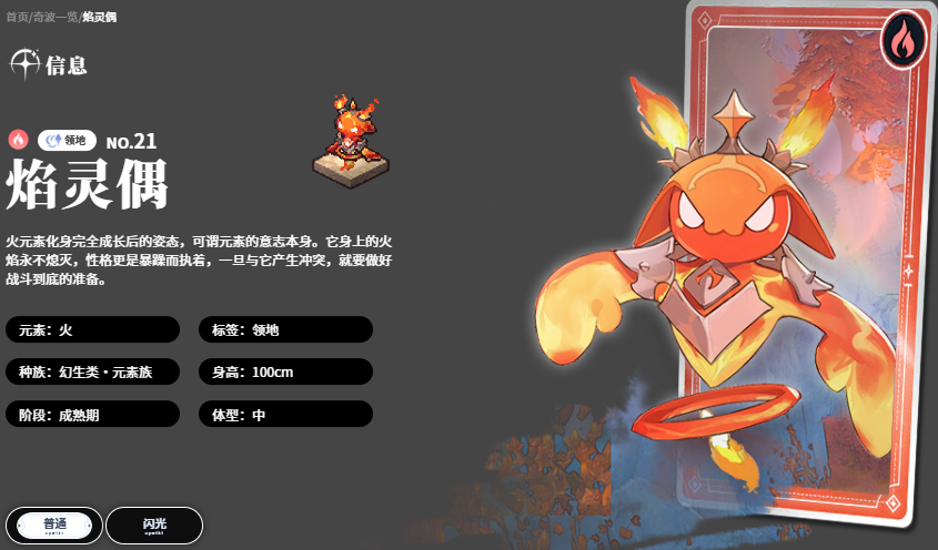火系奇波“焰灵偶”以高倍率范围伤害与持续灼烧著称。技能【灼焰火环】、【分裂之焰】、【火球连射】与【大焰爆】协同运作:【灼焰火环】可对周围敌人造成最高228%倍率火属性伤害,并提升自身及队友5.2%攻击力;所有火系技能命中后,将使目标在后续8秒内持续承受火元素附加伤害。大招【大焰爆】投掷空中火球,落地后分裂为多个小型火焰弹,实现广域覆盖与多重溅射,是清杂与压场的高效选择。