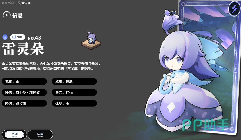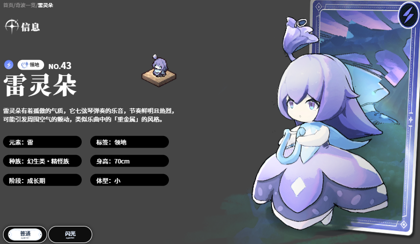 雷系奇波“雷灵朵”专注连锁打击与暴击赋能。技能【雷鸣协奏】、【连锁雷球】、【电能子弹】与【花灵斩击】构成多向雷电投射体系:单次发射4枚雷球,沿路径对命中的敌人造成35%基础倍率雷属性伤害,并触发侧向二次雷击;随命中次数累积,临时伤害数值逐步提升。更重要的是,雷灵朵的雷系攻击可为全队提供暴击伤害加成,显著放大雷队爆发上限,适合速攻流与节奏压制型配队。