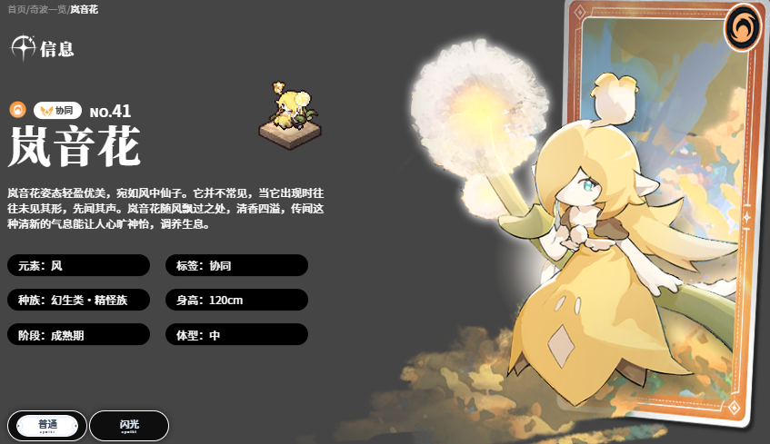 风系奇波“岚音花”主打团队增益与领域压制。技能【飞绒漫舞】、【风刃扩张】、【小风弹】与【花灵斩击】共同构建持续风场,对范围内敌人施加高频风属性伤害。其核心被动可叠加至5层,每层提升全队4%风属性伤害,满层后持续15秒,极大强化风队整体输出效率。此外,岚音花还能同步提升自身及队友攻击力、暴击率与技能冷却缩减,是风属性队伍不可或缺的功能型核心。