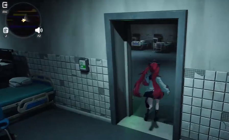 第三步:应对二楼双态场景。根据当前环境状态选择对应操作:若区域积水,则前往卫生间打开排水阀;若处于昏暗状态,则需手动开启照明设备。完成状态切换后,迅速前往中央病房获取监察记录存放点的关键权限。