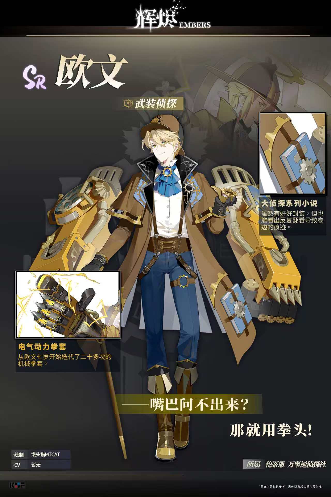 在《辉烬》的世界中,玩家将化身传火者,踏上被侵蚀的大地,与化身为烬天使的伙伴们共同对抗黑暗。欧文正是其中一位备受关注的烬天使角色。作为SR品质的格斗系战士,他不仅获取途径便捷,且战斗表现稳定,是每位玩家都应掌握的核心角色之一。接下来,我们将深入解析辉烬欧文怎么样。