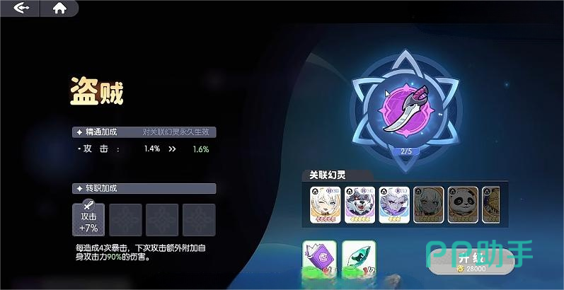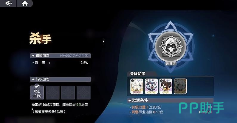 以刺客职业为例,其专属幻灵适配的命途为“杀手”。该命途提供基于百分比的攻击力加成,并设有击杀增益机制:每成功消灭一名敌方单位,自身攻击力即提升13%,可叠加生效。这一设计极大强化了持续作战中的伤害成长性,尤其适合高频率收割场景,是提升刺客爆发与续航能力的关键命途分支。