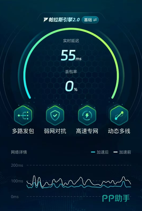 当成功开启加速功能后,更是可去实时追踪了解当下具体延迟以及波动,像丢包情况、运行时间等关键数据都能一目了然,而且在操作上还十分灵活,当不需要加速时只需点击一下即可立即停止。