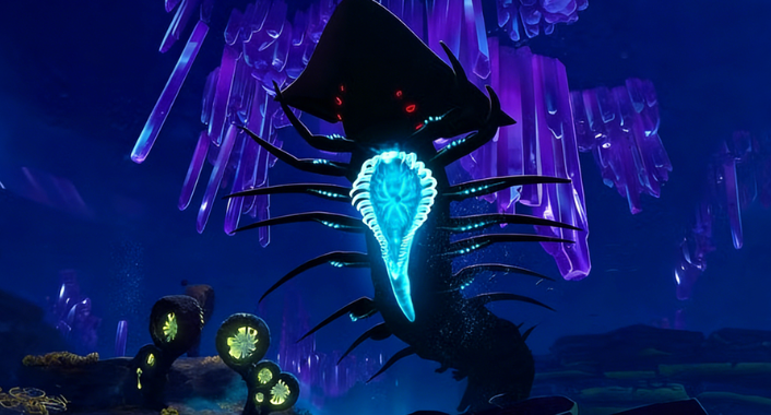 暗影利维坦为全游戏体型最大、隐蔽性最强的水下利维坦,外形近似巨型深海甲壳类,常年潜伏于岩缝与沉船结构内部。其核心攻击手段为双螯钳制+高浓度腐蚀酸液喷射,实测可在3.2秒内完全溶解海峡号标准装甲层。该生物常守卫先驱者碎片密集区,迫使玩家必须深入其领地采集关键资源。推荐方案:升级海峡号耐酸涂层、携带远程声呐干扰器,并严格控制单次探索时长不超过90秒。