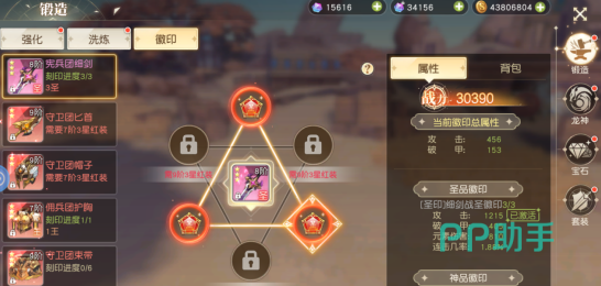 徽印系统提供差异化属性补充。每件装备设有独立徽印槽位,镶嵌相同等级徽印并填满全部槽位后,可触发“印记奖励”。徽印主要产出自周期性运营活动,集齐指定数量后还可激活套装专属效果。需注意:徽印激活对装备星级与阶级存在硬性要求(如需5阶或9阶),且更换装备时徽印不可继承,必须手动拆卸与重装。
