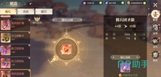强化系统以强化石为消耗资源,所有七件基础装备均可独立强化。强化材料可通过日常活跃度任务、装备秘境副本、离线挂机收益及限时运营活动稳定获取。关键机制在于:更换同部位装备时,原装备强化等级可100%无损继承至新装备;当全身七件基础装备强化等级均达到指定阈值,即可激活“强化加成”额外属性增益。