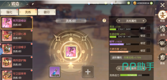 洗练系统用于拓展装备属性维度。首条洗练属性槽位免费开启,后续槽位需消耗绑定钻石解锁。洗练过程支持使用通用洗练试剂或对应品质专用试剂,以提升目标属性出现概率。已激活的洗练属性在更换装备时同样支持完整继承,确保培养资源零损耗。