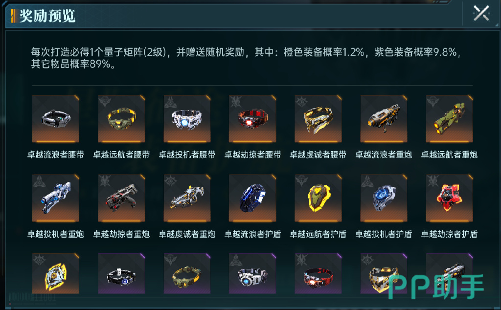 作为一个限时的活动,大家在活动开放的期间,可以利用消耗200点的信用来进行一次的打造,每一位玩家都是有限制的,只能最多进入100次打造,只要精心打造,就会获得二级的量子矩阵,可以帮助大家更好地强化英雄的装备,在后续活动奖励之中,还会随机抽取一种奖励,包括橙色的装备,紫色的装备以及量子矩阵,而橙色装备的概率有1.2%,这次的概率有8.9%,大部分玩家都是抽蓄到量子归真。