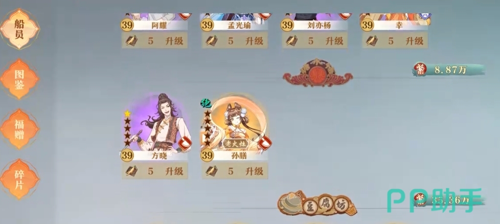 一般在获取了这些资金之后大家需要尽快用到船员升级以及食舫升级上面,船员升级可以让大家的客户满意度上升,一个船员也可以接待更多的客人,而食物舫升级会让大家整体的繁荣度上升,繁荣度上升则是可以吸引更多的客人来,所以这些培养路径都是需要同步进行的,但是越到后期大家需要的资源就越多,包括每一次升级需要的资金也会越来越多,所以这里就需要大家在上面好好的计算前期收益如何使用哦。