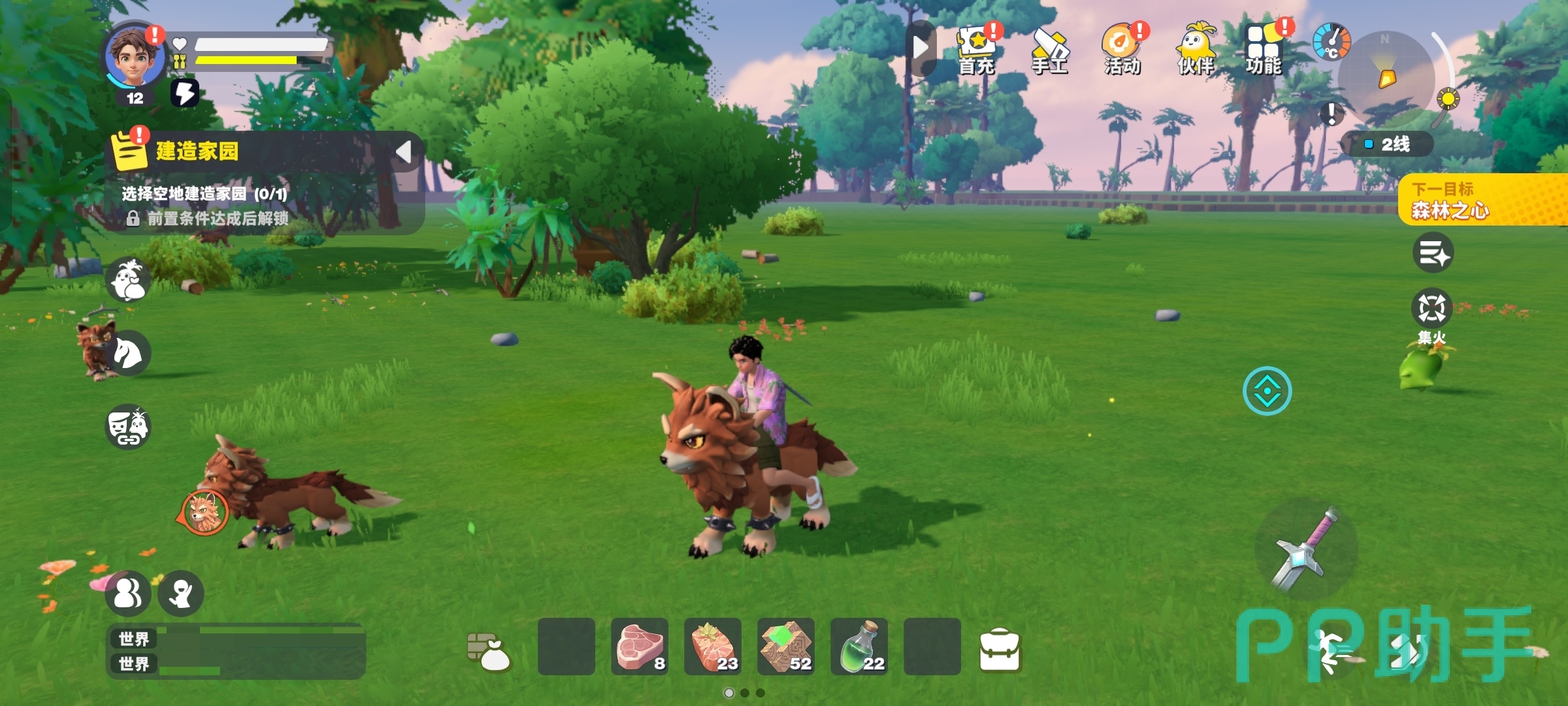 宠物系统设计兼具收集性与功能性,目前已上线超百种原创萌宠,按火、水、雷三系属性划分,天赋等级覆盖灰、白、蓝、紫、金五阶。部分特色个体如“卟卟”“粉粉熊”具备野外资源自动采集能力,不同属性组合可适配矿场挖掘、水域勘探、雷区探路等差异化作业场景,提升探索效率与策略深度。
