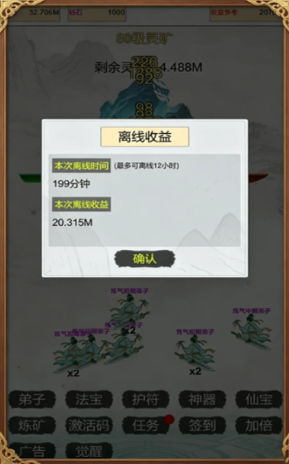 中后期阶段,玩家主要承担战略调度职能:御剑巡游地图,扫描未知灵脉坐标,优化弟子部署结构,并升级采矿法器与洞府设施。弟子数量与等级直接影响整体挖矿效率,而离线状态下资源仍按设定速率稳定积累,真正实现“上线收矿、下线涨修为”的闭环成长体系。
