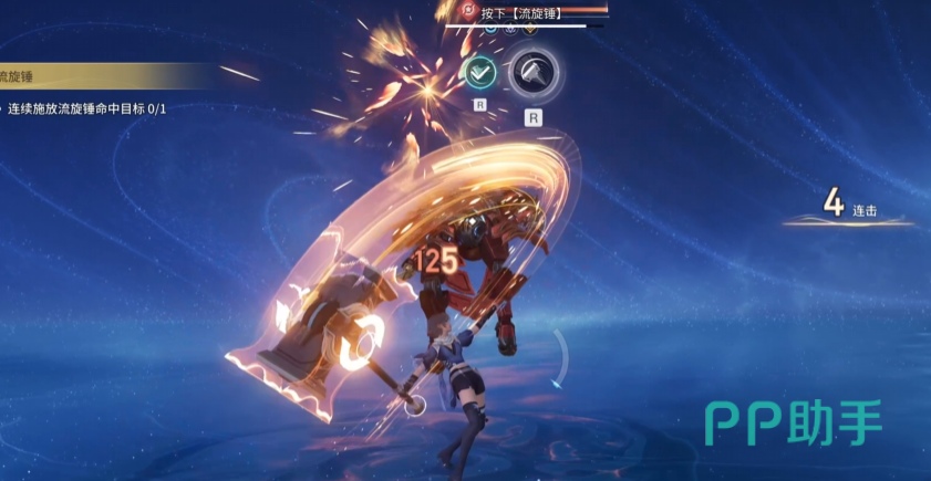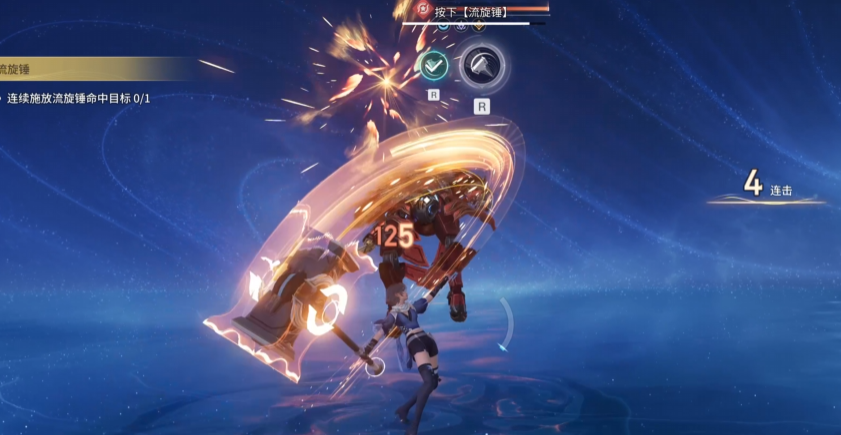 三技能“流转锤”为重锤形态下的两段式爆发技能,是核心输出手段之一,常用于衔接连招或收割残血。