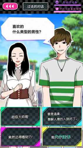 这是一款趣味十足的恋爱文字冒险手游,它把恋爱养成和密室逃脱玩法巧妙结合,能给玩家带来前所未有的新奇感受。而且,游戏的操作玩法十分简单。在游戏中,玩家会扮演一位27岁的普通白领,看着身边的朋友陆续步入婚姻殿堂,自己在机缘巧合之下结识了十位不同职业的男生,有律师和医生以及公务员等等。玩家可以深入了解他们,从中挑选出适合自己的伴侣,携手走过一生。
