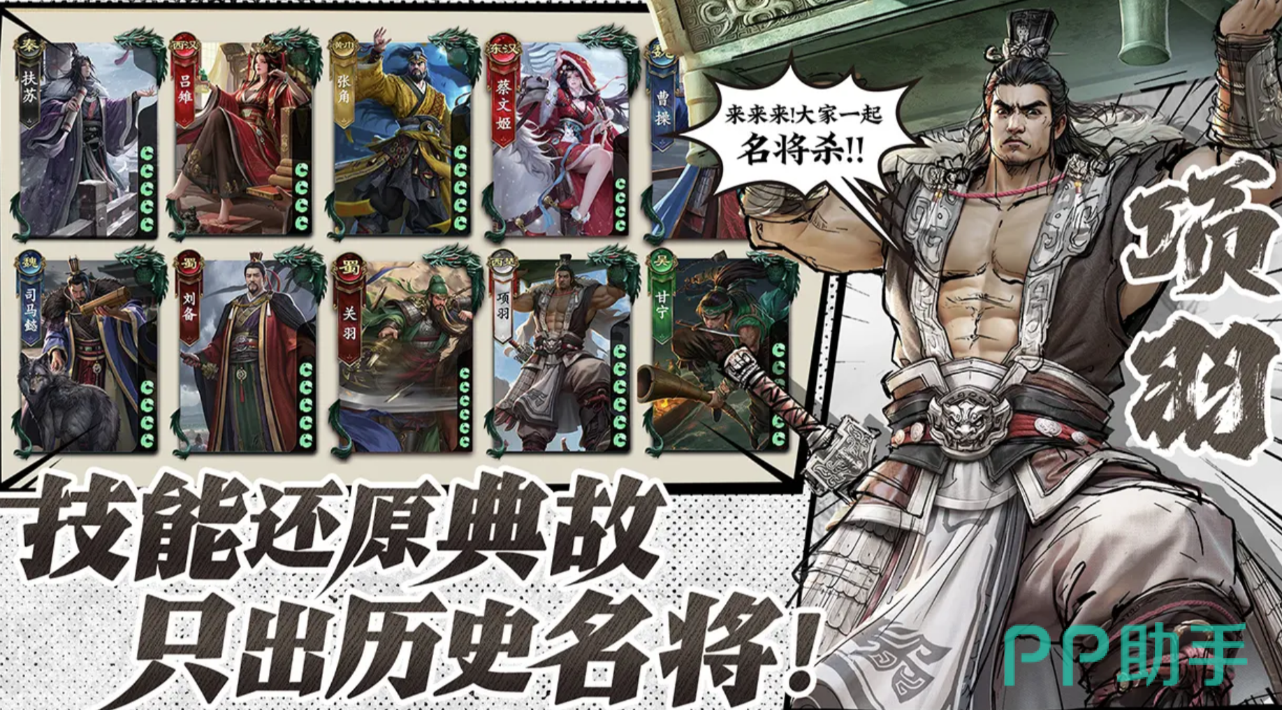 《名将杀》是一款以历史名将为主角的多人身份推理类卡牌对战游戏,背景横跨三国、楚汉等经典时代,汇聚了如韩信、关羽等家喻户晓的将领形象。游戏设置了包括主公、忠臣、刺客在内的16种身份,每种身份拥有独立胜利目标,玩家需通过手牌运用、技能释放以及团队协作完成局势逆转。其特色在于全员皆为真实历史人物,无废卡设定;技能设计紧扣史实典故,兼具文化深度与玩法趣味。同时支持三持装备系统、阵营羁绊激活,并开放自定义武将与规则编辑功能,极大拓展了策略自由度。