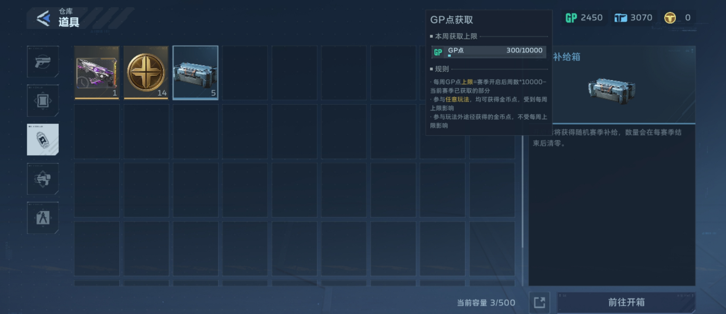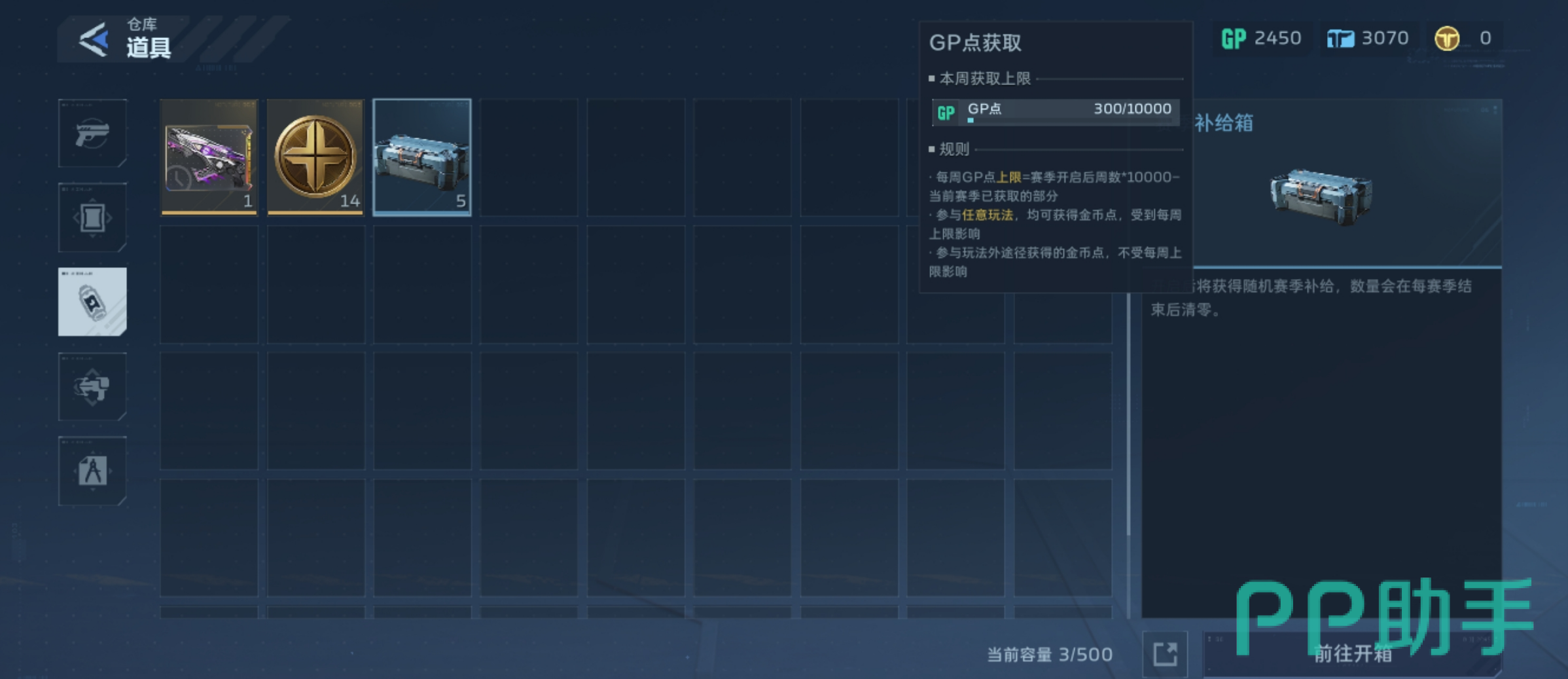 2、赛季补给箱随机获取:开启补给箱有概率直接获得GP点数。补给箱获取途径丰富,包括赛季等级晋升奖励、每日/每周活跃任务结算、开服限时活动等,属于低门槛、可持续的补充来源。