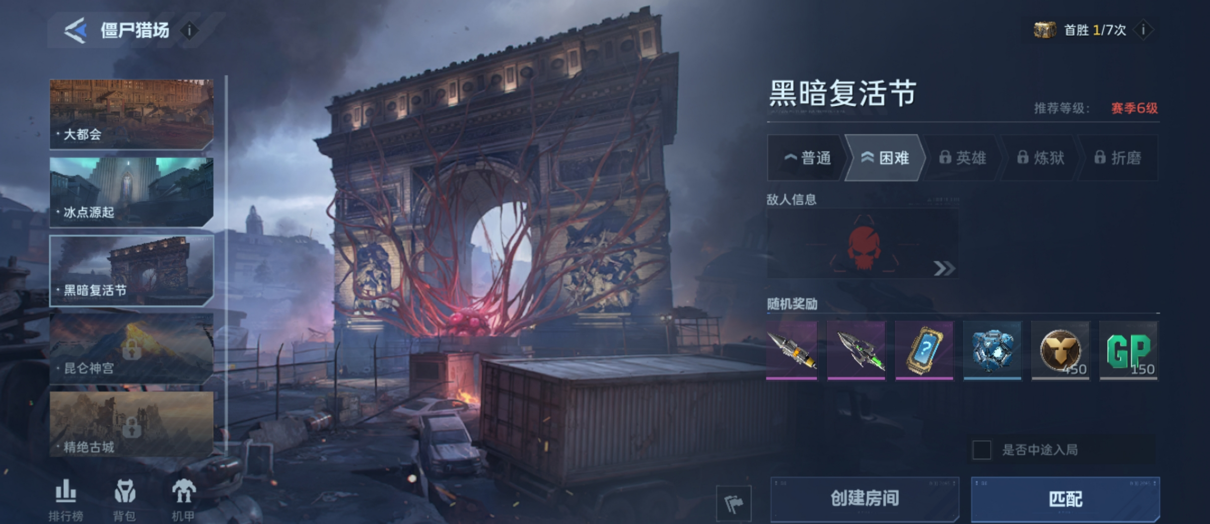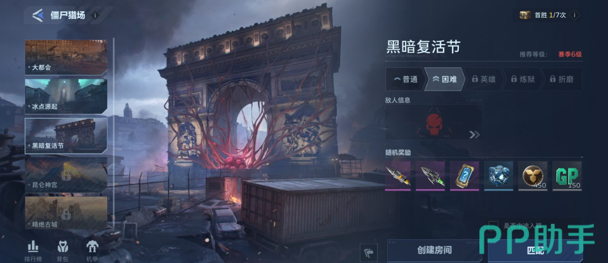 1、主线玩法高效产出:完成赛季等级解锁后,可参与【僵尸猎场】【塔防】【机甲战】【排位赛】四大常驻模式,均提供稳定GP奖励。新手推荐聚焦【僵尸猎场】——该副本含多层级任务体系(简单/困难/炼狱),难度越高,单次通关GP收益越丰厚;若达成MVP评级,还将额外获得GP加成奖励。